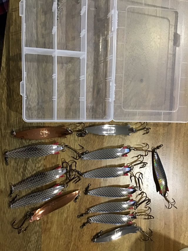 Detalles del productoLote de señuelos de pesca Abu Garcia Toby de 28 gramos.