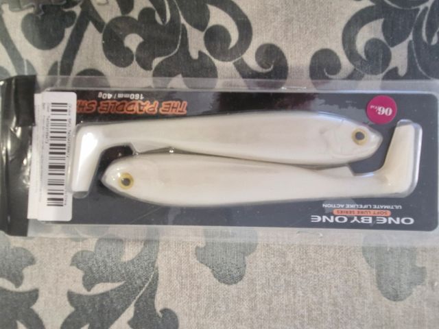 Detalles del productoSe venden dos señuelos de pesca One By One, modelo The Paddle Shad. Son de color blanco roto y miden 160 mm. Están en perfecto estado.