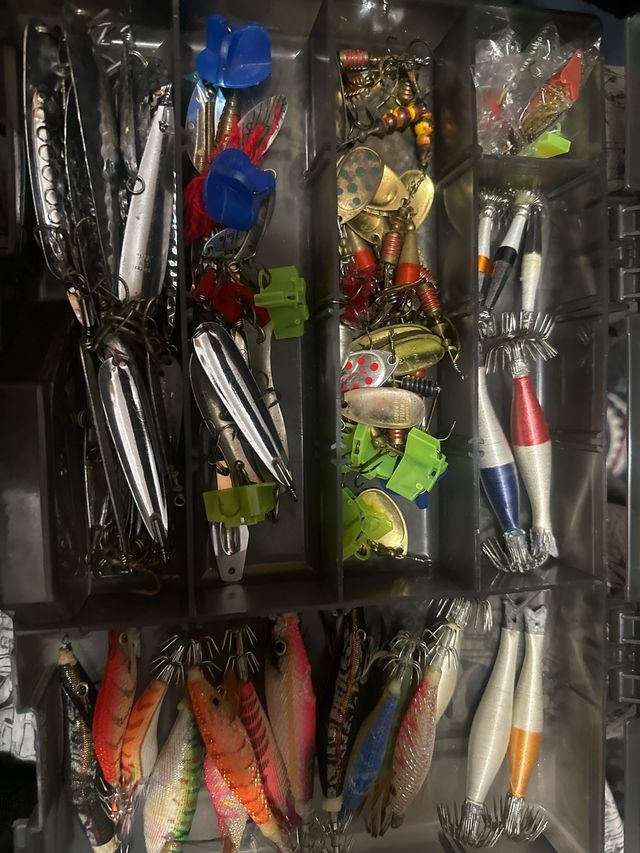 Detalles del productoLote de señuelos de pesca de diferentes tipos y colores. Ideales para la pesca deportiva.