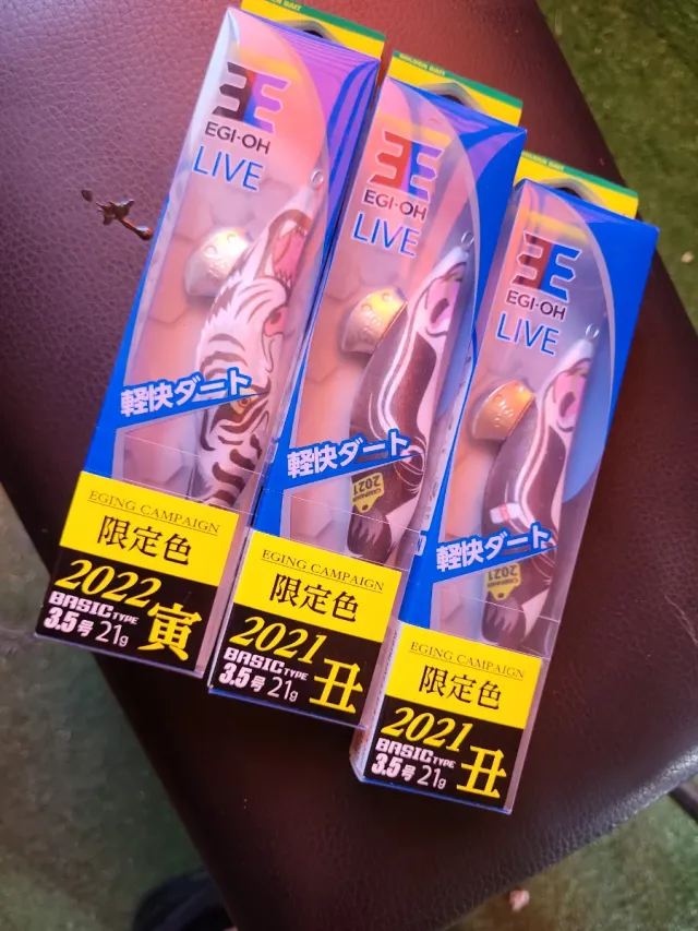 Detalles del productoTres señuelos de pesca EGI-OH LIVE de edición limitada.