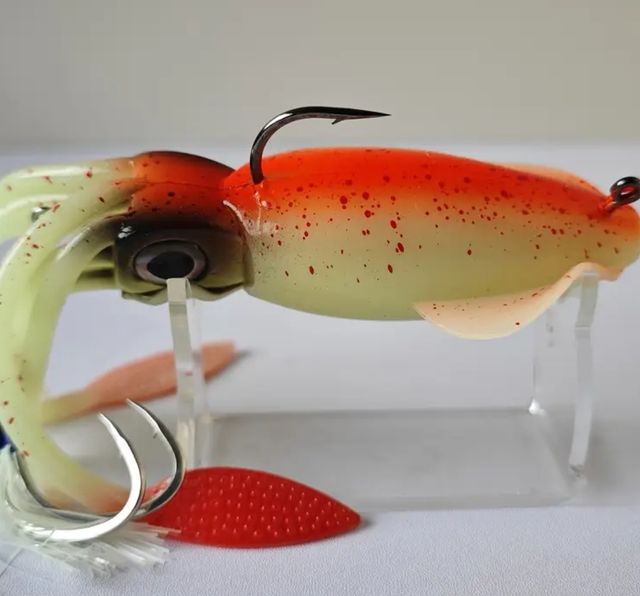 Señuelo imitación sepia y calamar para jigging, peso 135gr sepia y 150 calamar, los dos son glow 10 cada uno