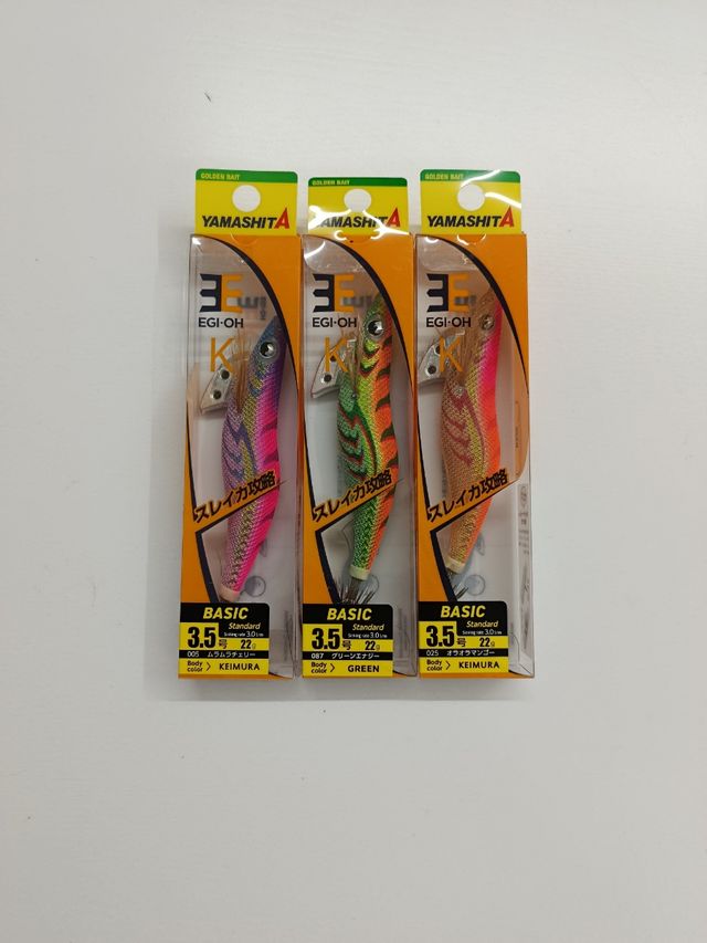Detalles del productoLote de tres señuelos de pesca para eging de la marca Yamashita.