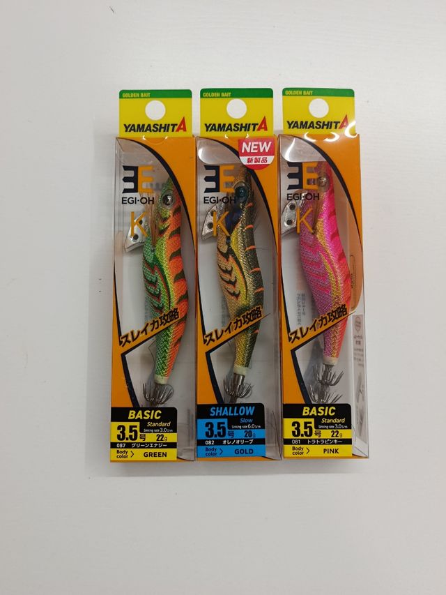 Detalles del productoLote de 3 señuelos de pesca para eging de la marca Yamashita, modelo EGI-OH.