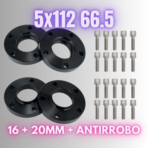 Separadores 5x112 66.5 de 16 y 20mm con antirrobo