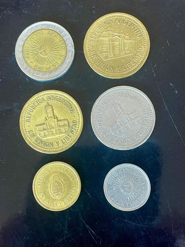 Serie completa que incluye monedas de 1 Peso, 1 de 50c, 2 de 25c (una dorada y otra plateada), 1 de 10c y 1 de 5c (detalles en foto 3)
