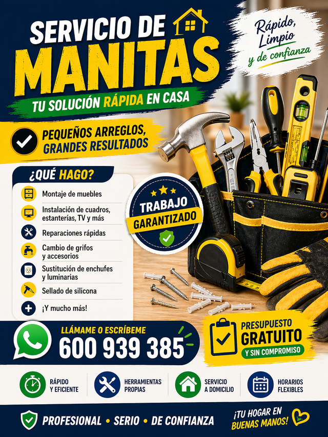 Arreglos rápidos y económicos en tu hogar: montaje de muebles, TV, enchufes, grifos, reparaciones y más.