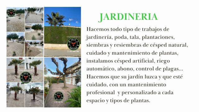 Detalles del productoEn Jeyc Servicios trabajamos cada día para hacerle la vida más fácil a nuestros clientes. Disponemos de servicios integrales para el hogar y el negocio con profesionales cualificados y productos de calidad. Jardineros y trabajos forestales,piscinas,limpiezas de todo tipo (vacacionales, fin de obra, mantenimiento,de choque,por mudanza,vaciado de pisos y trasteros,por venta o alquiler...),albañiles, pintores,aires acondicionados,carpinteros de madera y aluminio,lavado de coches a domicilio,servicios inmobiliarios,cerrajero 24h/365 días...Pídanos presupuesto sin compromiso, atendemos por WhatsApp o llamada 611906786 desde 15.50€