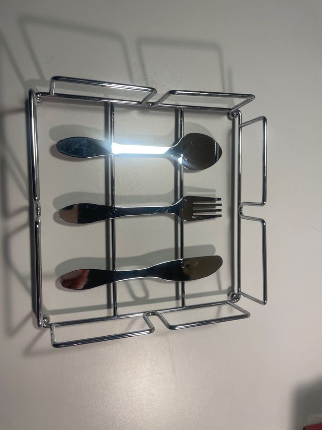 Detalles del productoservilletero metalico cuadrado en acero brillante con detalle de cubiertos en la parte de abajo . esta como nuevo. Medidas del producto