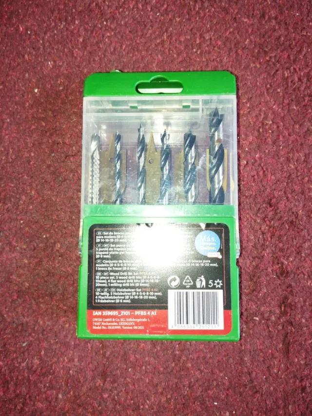 - Incluye 5 brocas para madera (Ø 4-5-6-8-10 mm).