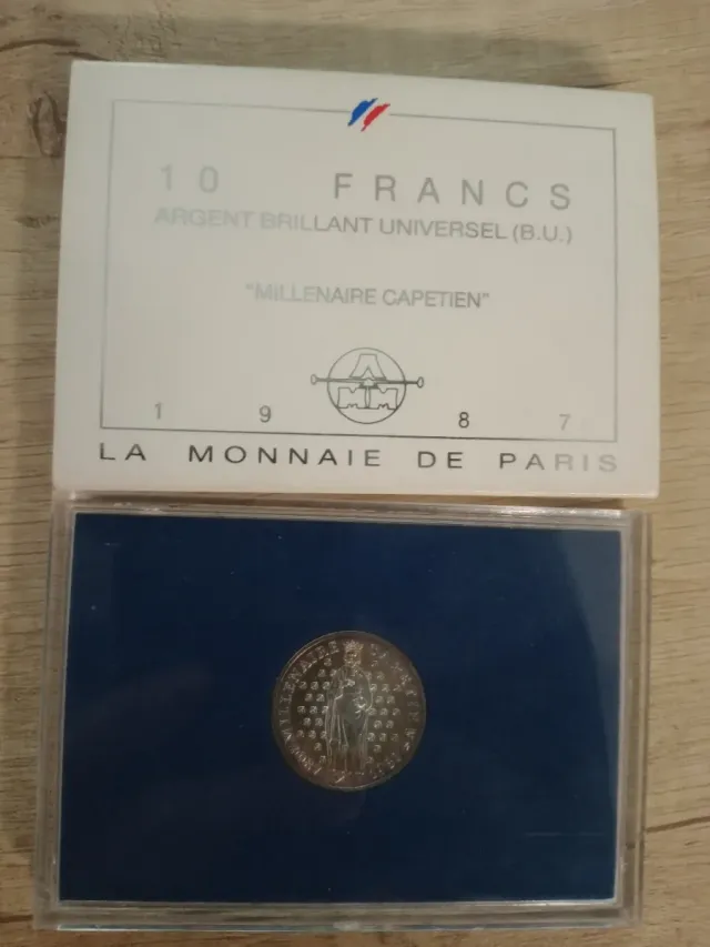 Detalles del productoSe vende pieza de 10 Francos 1987 "Millénaire CAPETIEN" en su estuche original calidad BU (Brillante Universal)