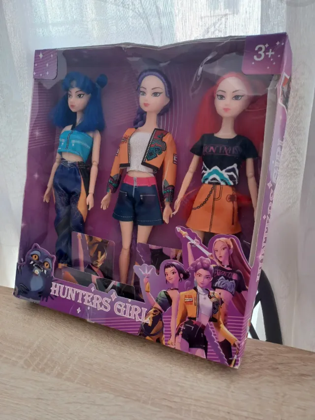 Detalles del productoSe vende set de tres muñecas de la popular línea Hunters Girl, también conocidas como K-pop Demon Hunters. Las muñecas incluidas son Rumi, Mira y Zoey, cada una con su distintivo estilo K-pop y atuendos detallados.