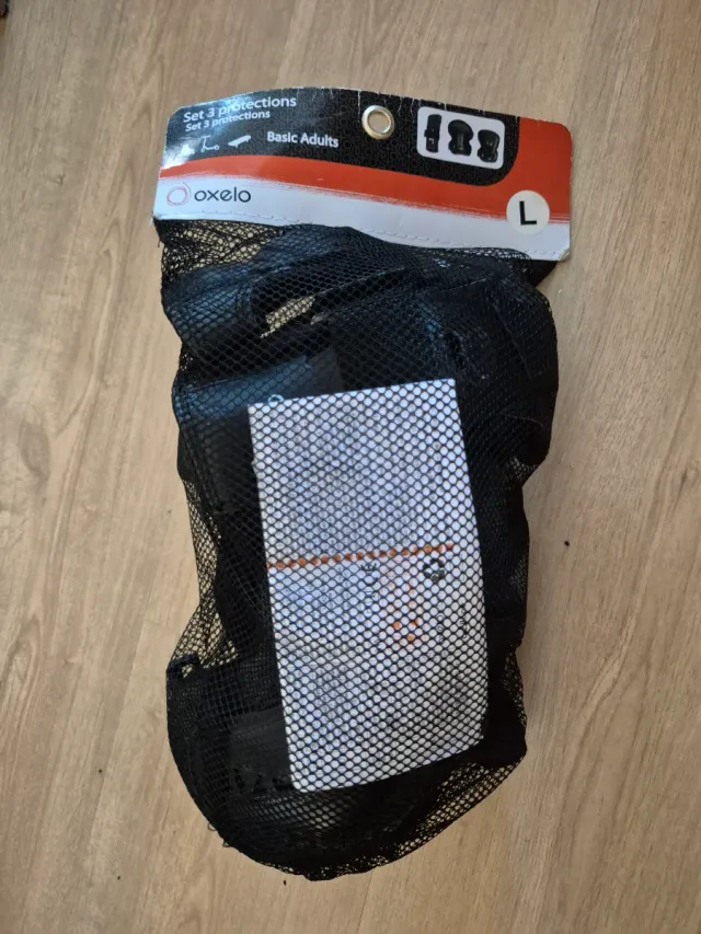 Detalles del productoSet de protecciones Oxelo para adultos, talla L. Incluye rodilleras, coderas y muñequeras.
