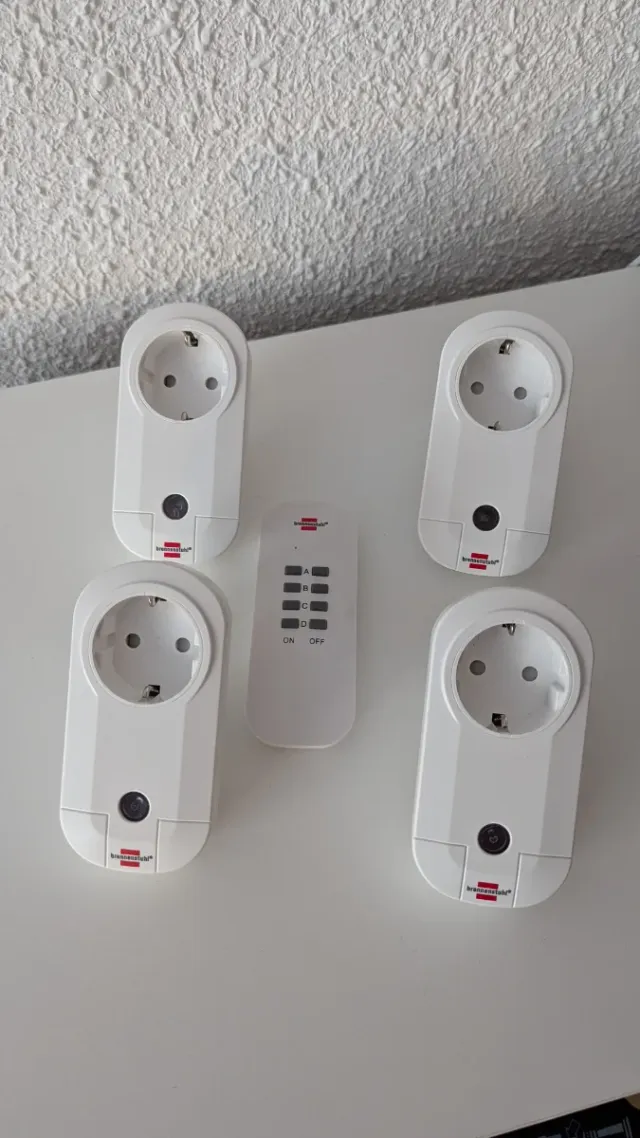 Detalles del productoConjunto de cuatro enchufes con control remoto para encender y apagar dispositivos a distancia. Incluye el mando a distancia.