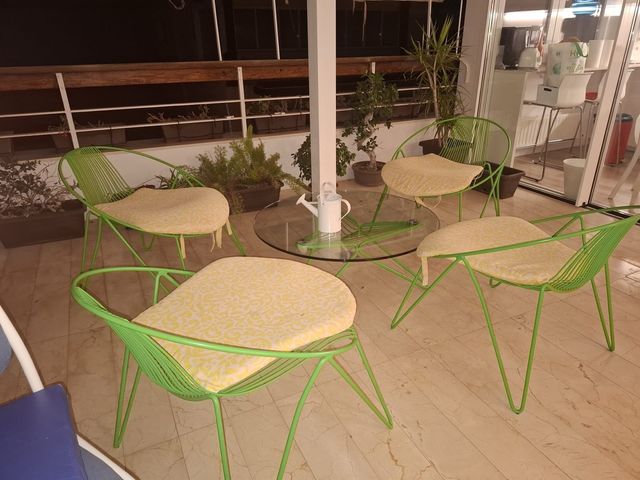 Set 4 Sillas Diseño Terraza y mesa Cristal Metal