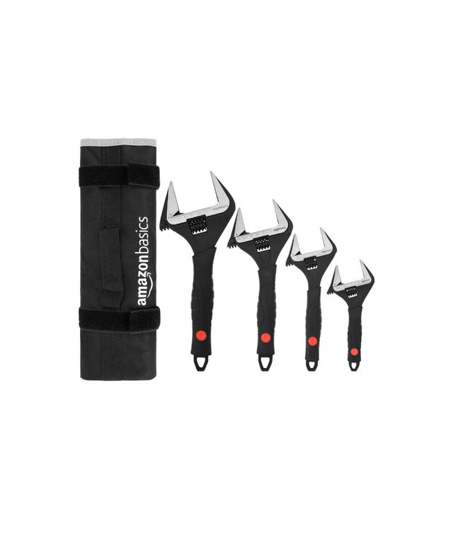 Juego de cuatro llaves de fontanería ajustables de mordaza ancha con escala de medición en pulgadas / métrica: 6 pulgadas (150 mm), 8 pulgadas (200 mm), 10 pulgadas (250 mm), 12 pulgadas (300 mm)