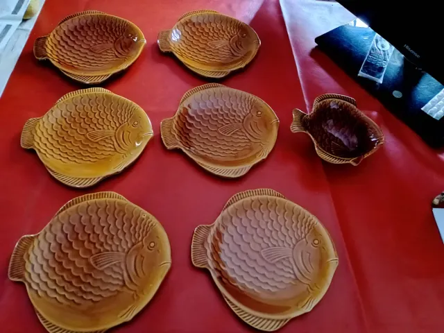 Set 6 Platos Cerámica Forma Pez Marrón Beige