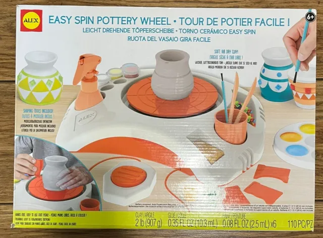 Detalles del productoKit de alfarería para niños, para crear piezas de cerámica de forma sencilla. Incluye torno, pinturas y complementos