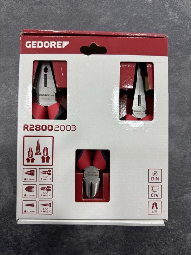 Set de alicates Gedore R28002003. - Fabricados en CrV. - Cumplen con la norma DIN. - Incluye 2K.