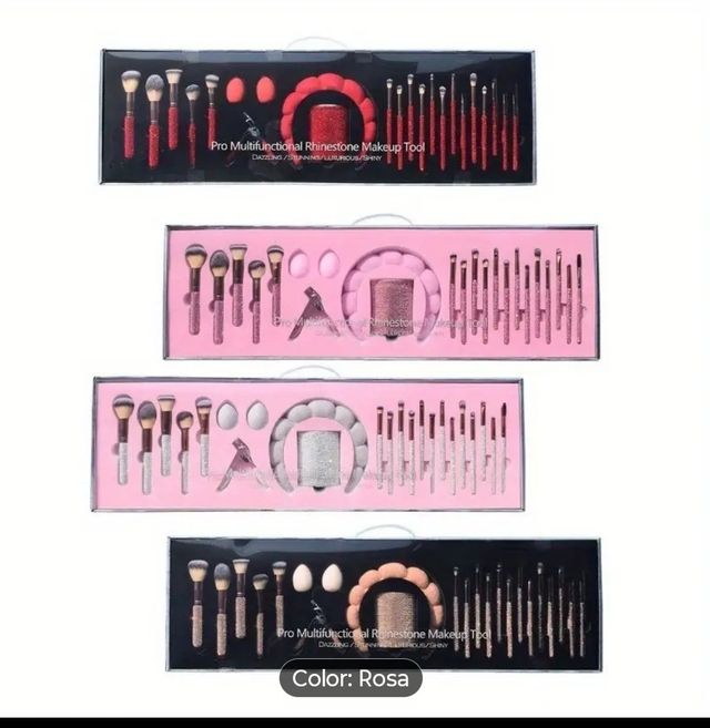 Set Brochas Maquillaje con Brillo Rosa y Plateado