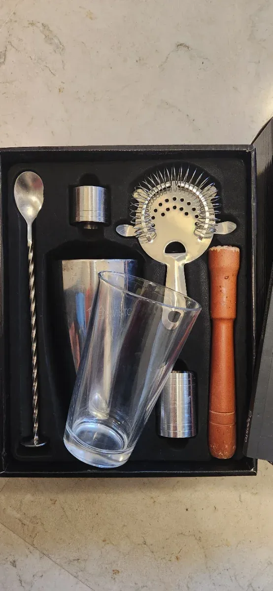 Set Coctelería Metal, Madera y Cristal