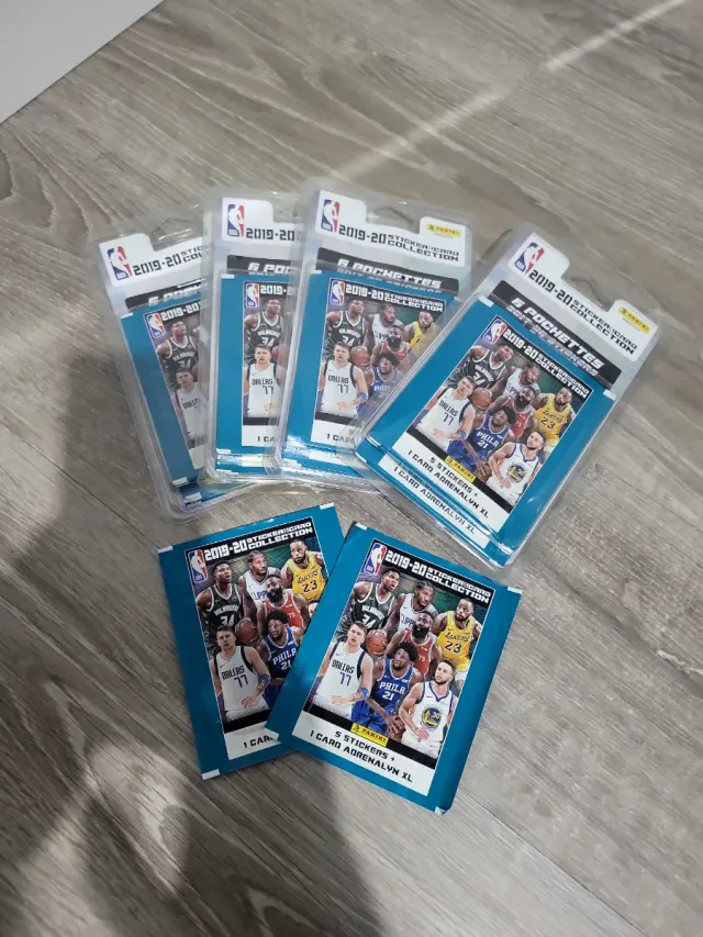 * 4 blister sellados sin abrir de la colección de Panini NBA 2019-2020. Cada uno incluye 6 sobres de la coleccion, cada sobre contiene 5 stickers y 1 card Adrenalyn XL.