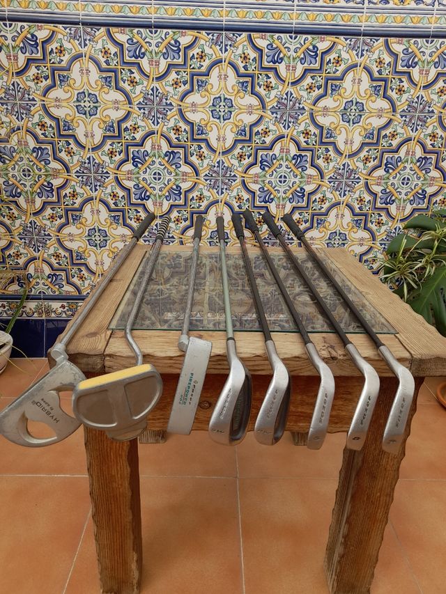 Detalles del productoSet completo de 14 palos de golf, con bolsa incluida en muy buen estado. Ideal para jugadores de todos los niveles. Incluye una variedad de hierros, maderas y putters para cubrir todas las necesidades del juego.