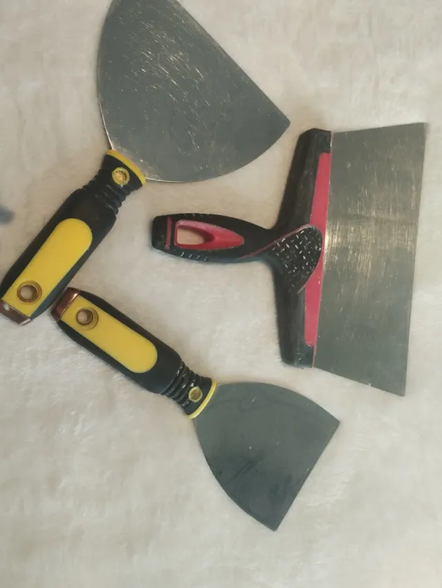 Como nuevoDetalles del productoConjunto de tres espátulas de diferentes tamaños y formas, ideales para trabajos de albañilería o pintura.
