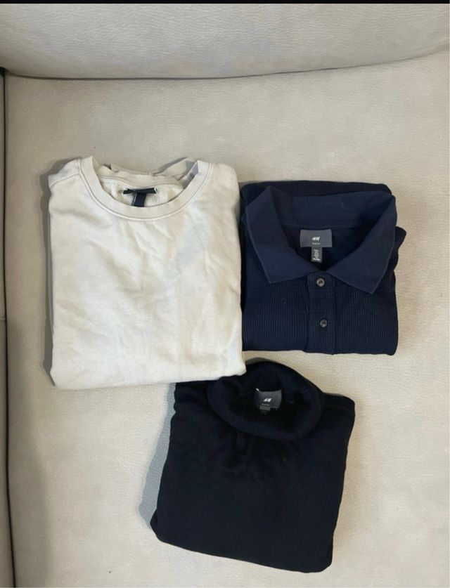 Set de 3; jersey beige H&M, suéter estilo polo H&M