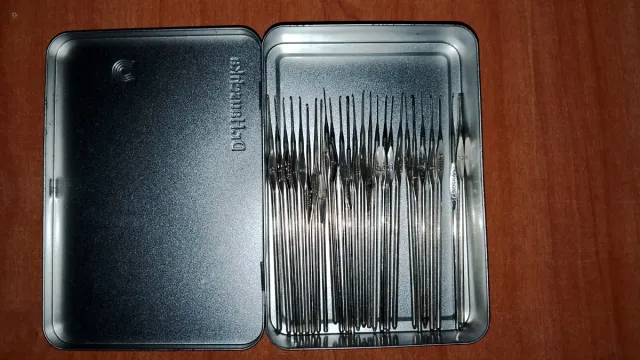 Set de agujas de ganchillo metálicas. - Incluye varias agujas de diferentes tamaños. - Vienen guardadas en una caja metálica.
