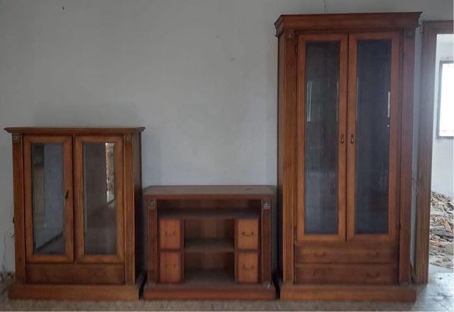 Detalles del productoconjunto de comedor, compuesto por tres muebles, vitrina alta, vitrina baja y mueble de televisión. Los tres quedarían muy bonitos restaurados.