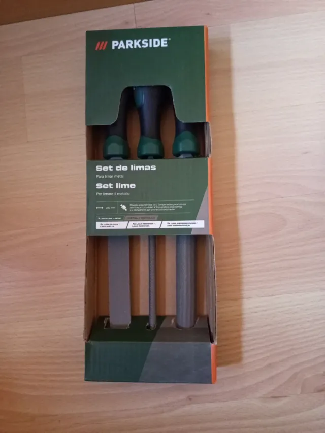 Set de limas para metal de la marca Parkside. Incluye tres limas de diferentes tipos. - Lima plana - Lima redonda - Lima triangular