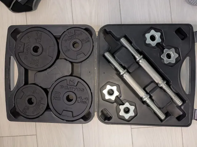 - Discos de peso: 8 x 1kg, 4 x 2kg.