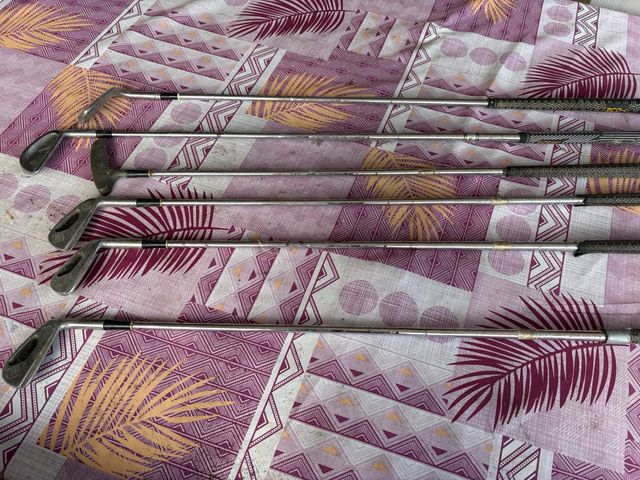 Conjunto de palos de golf para mejorar tu juego. - Varillas metálicas. - Empuñaduras de goma.