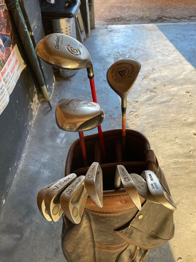 - Hierros Titleist (números 5, 6, 7, 8 9) sand wedge y p y madera boomerag, incluidos bolsa y putter