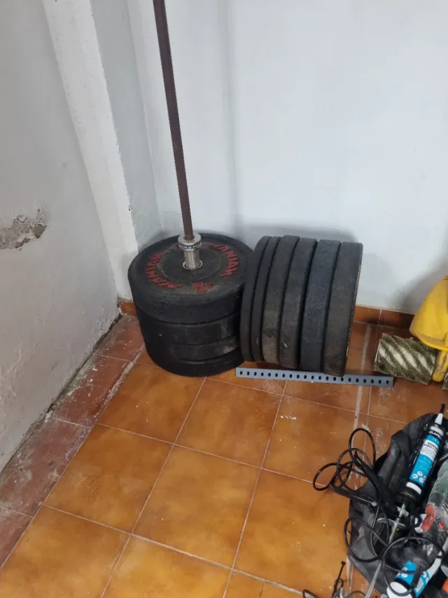 Detalles del productoCompleto set de discos y barra olímpica.Muy poco uso. Lo compré para entrenar en casa y al final dejé de usarlo al poco tiempo