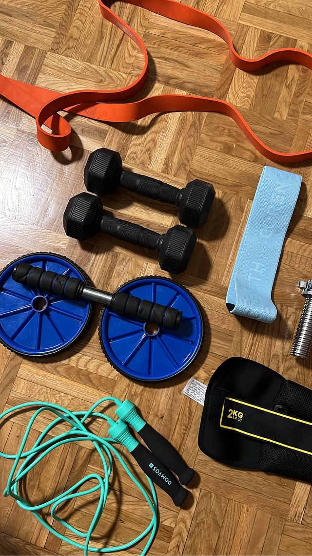 Set entrenamiento: Mancuernas, Cuerda, Rueda