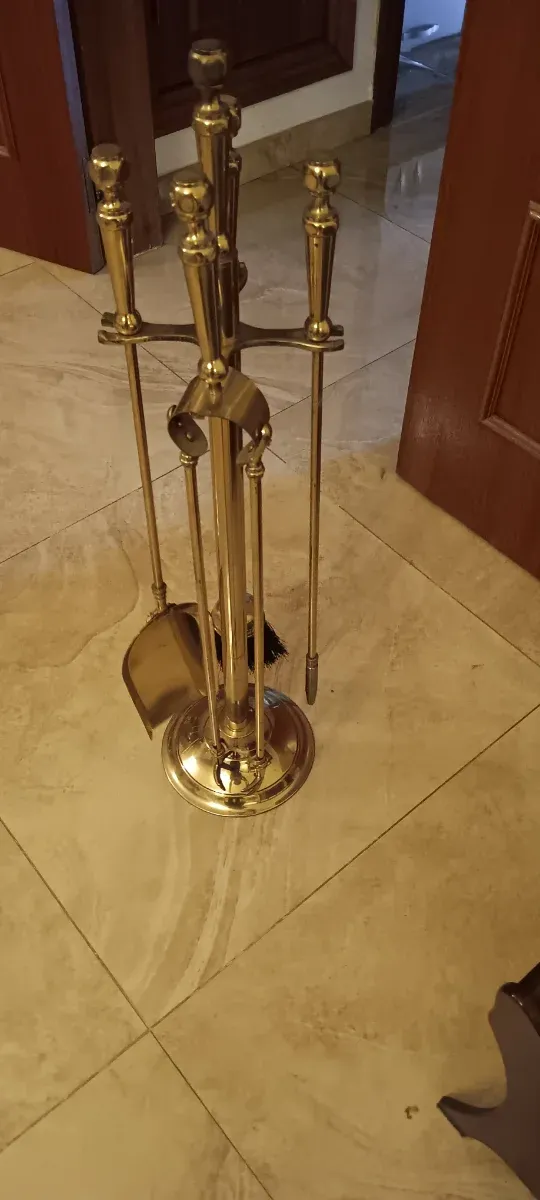 Detalles del productoElegante set de herramientas para chimenea fabricado en latón pulido. Incluye pala, cepillo, atizador y pinzas.