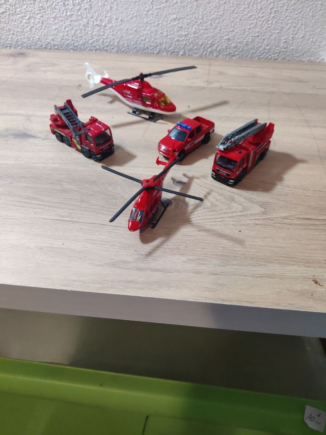 Detalles del productoSon 4 majorette 2 camiones de bomberos 1 volkswagen Amarok camioneta con cajón, 1 helicóptero de bomberos, de regalo un helicóptero welly también se bomberos