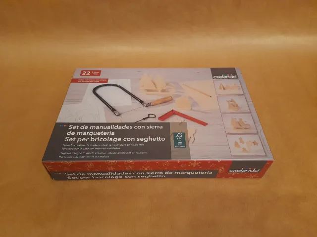 Detalles del productoSet de manualidades con sierra de marquetería de la marca Crelando. Incluye 22 piezas.