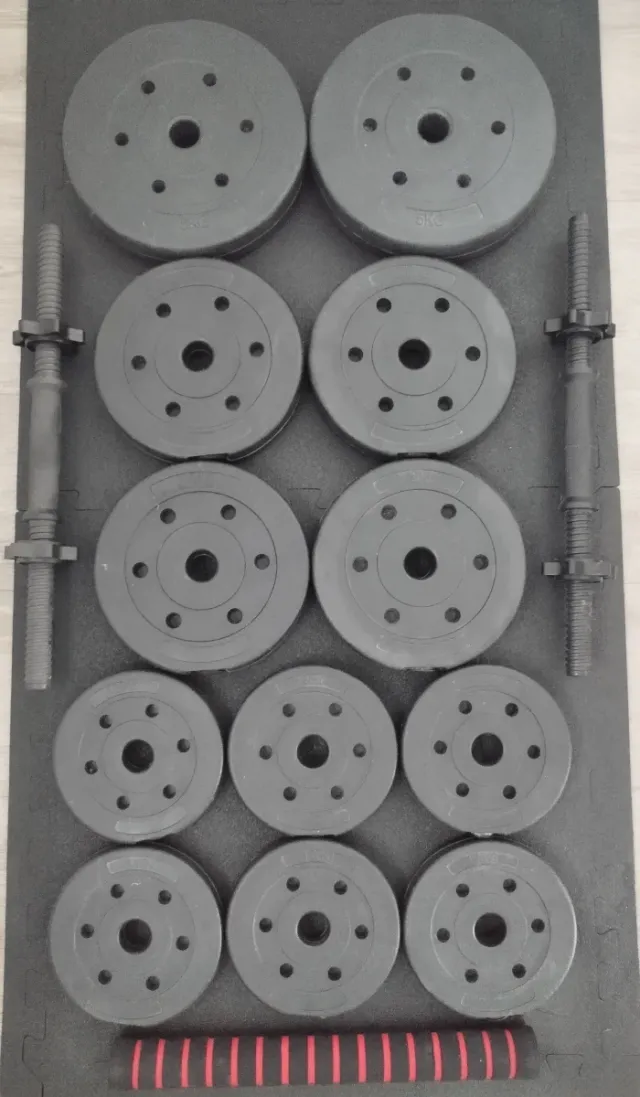 Mancuernas 2 en 1. Con adaptador para extensión. Precio: 10€.