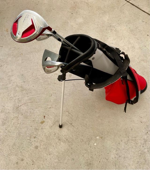Detalles del productoSet de palos de golf para niños de 8 a 10 años. Incluye un putter, hiero 7, Sand wedge, un driver y una bolsa.