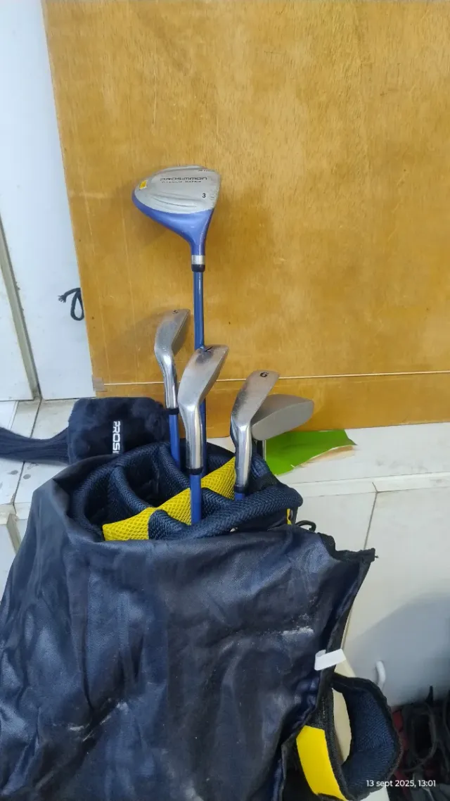 Set de palos de golf junior con bolsa. - Incluye un driver. - Incluye varios hierros. - Titanium junior