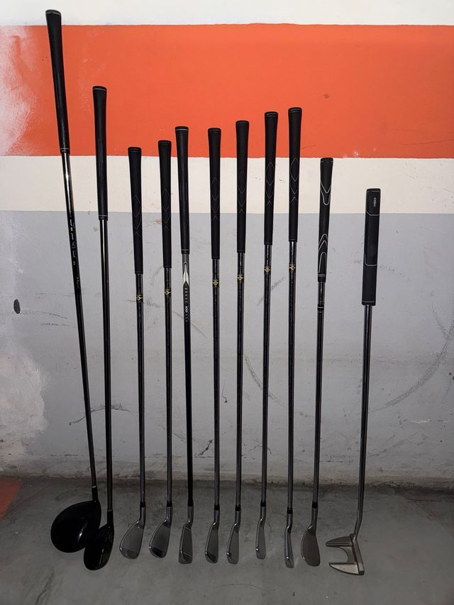 Detalles del productoConjunto de palos de golf que incluye marcas TaylorMade e Inesis.