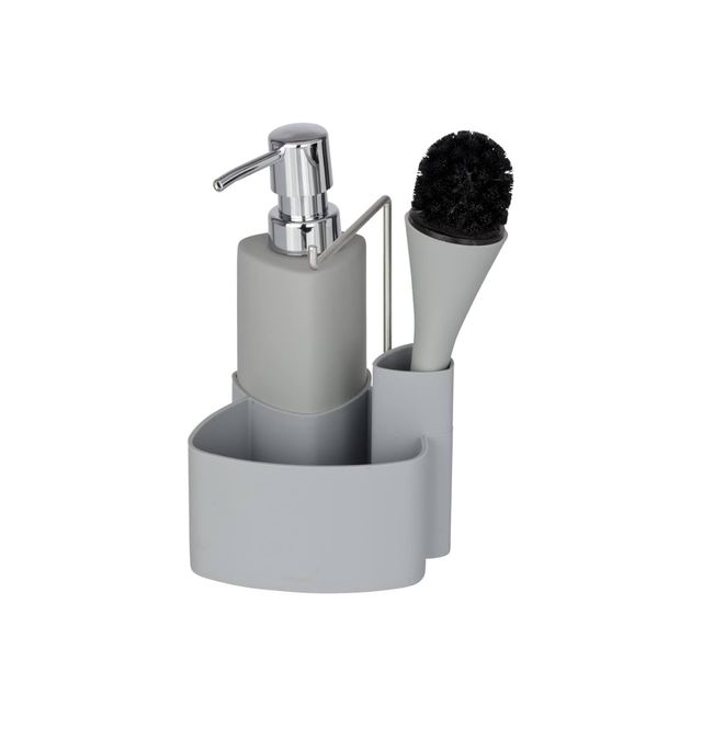 Detalles del productoWENKO Set lavavajillas Empire, 4 en 1 - dispensador, cepillo, soporte para paños de cocina y organizador, cerámica de calidad con superficie suave al tacto, 250 ml, 11 x 19 x 12,5 cm, gris