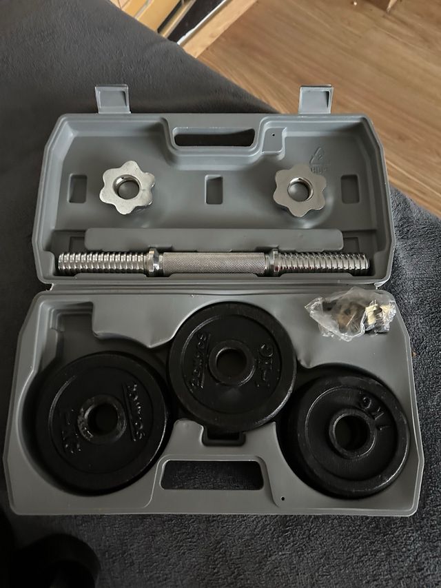 set pesas redondas con barra y maletín 6 pesas de 1kg, barra y maletín