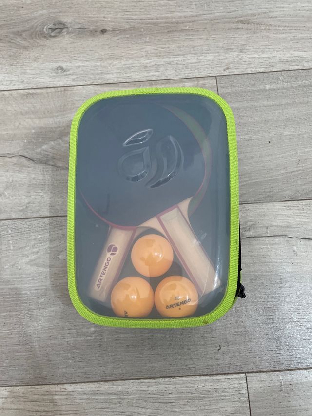Set de ping pong de la marca Artengo. - Incluye dos palas. - Tres pelotas de ping pong.