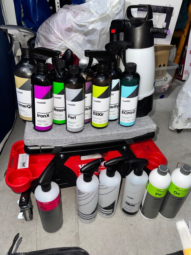 Detalles del productoConjunto de productos de detailing para coches de la marca CarPro totalmente a estrenar, algunos productos solamente se han usado 1 vez. incluyo iK e FOAM Pro 2 Pulverizador de presión a batería