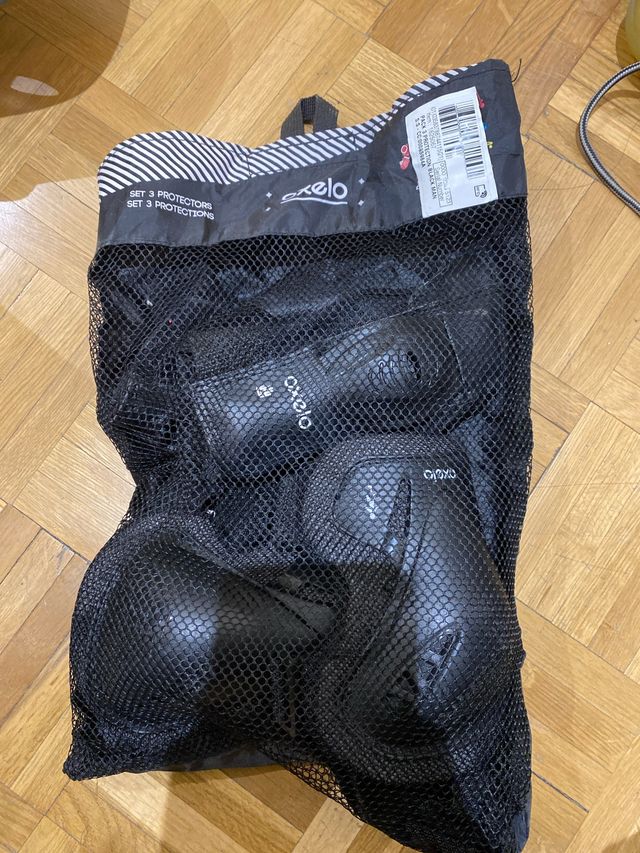 Detalles del productoSet de protectores para patinaje o skate de la marca Oxelo. Incluye protecciones para diferentes partes del cuerpo.