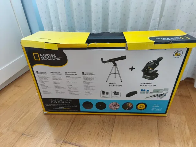 Detalles del productoSet de iniciación a la ciencia con telescopio y microscopio de National Geographic.Usado tan solo una vez aún conserva restos de embalaje.Comprado en Corte Inglés Navidades 2024 precio actual en web 105€.
