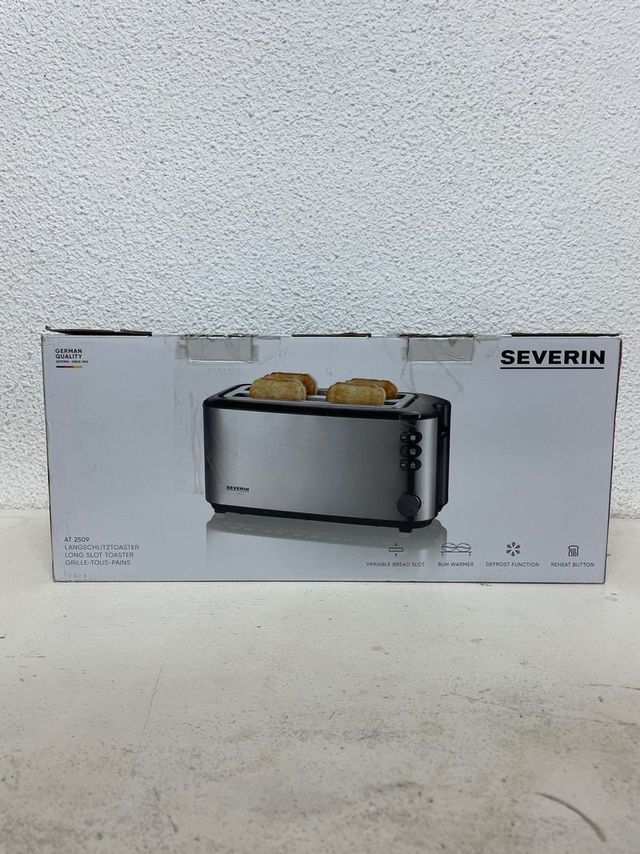 Detalles del productoTostadora Severin AT 2509 en muy buen estado. Es una tostadora de acero inoxidable de 2 ranuras largas.